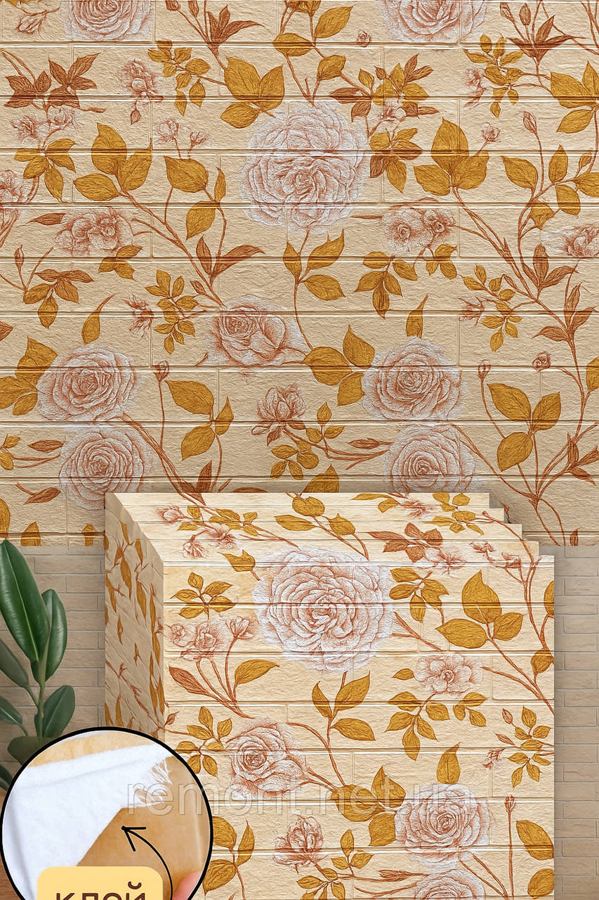 №105 Самоклеюча 3D панель "Золотисті квіти" 77×70 см товщина 4 мм