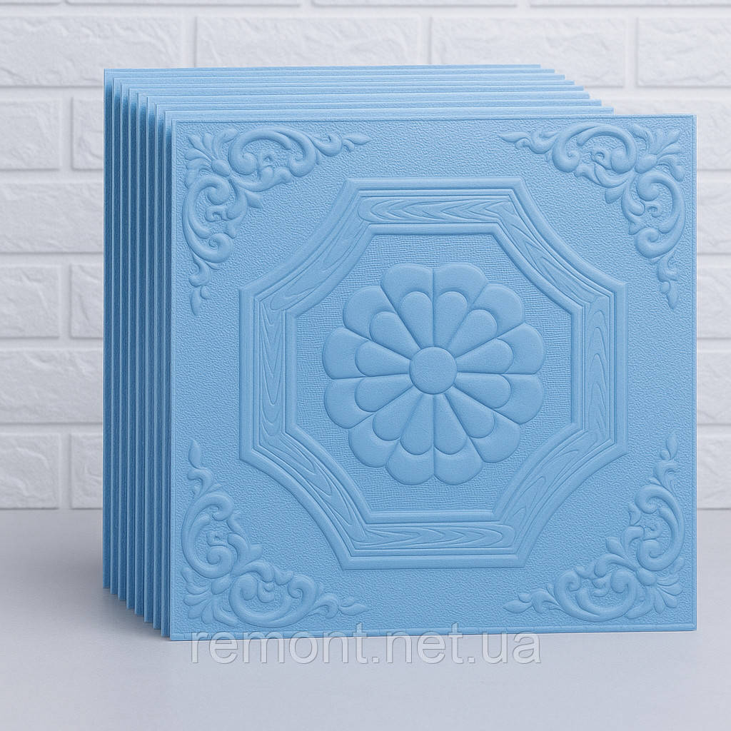 3D самоклеючі панелі для стін і стелі 35×35 см, «Квітка» з спіненого поліпропілену, блакитні